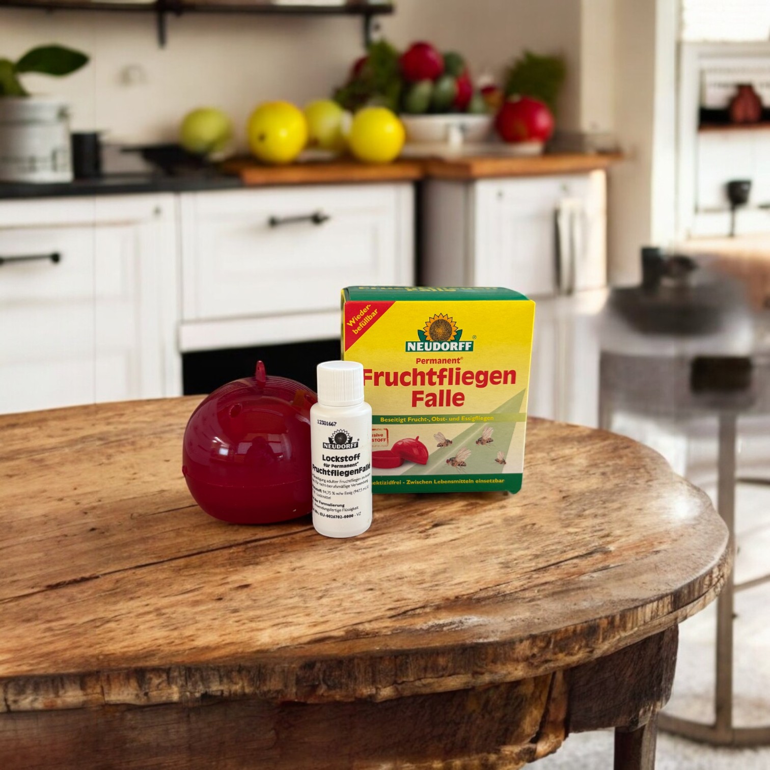 Falle zum zuverlässigen Abfangen der lästigen Frucht-, Obst- und Essigfliegen. Stellen Sie die Falle auf oder legen Sie sie in die Obstschale. Das Aufhängen am Kompostplatz ist ebenfalls möglich. Dank spezieller Bauweise ist die Falle auslaufsicher.