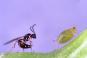 Die adulte Aphidius colemani ist mit 2-3 mm etwa halb so groß wie A. ervi. Kopf und Thorax sind schwarz und der Hinterleib braun gefärbt. In ihrem einwöchigen Leben kann ein Weibchen mehr als 200 Blattläuse parasitieren, die mit je einem Ei belegt werden. Nach 1-2 Tagen schlüpft die Larve, ernährt sich vom Innern der Blattlaus und durchläuft mehrere Larvenstadien, bevor sie sich nach etwa 10 Tagen in der ausgefressenen Blattlaushülle verpuppt. Diese mumifizierten Blattläuse sind leicht an ihrer aufgeblasenen, kugeligen Gestalt und ihrer gold-bronzefarbenen Färbung zu erkennen. Nach weiteren 5 Tagen schlüpft die adulte Schlupfwespe durch ein kreisrundes Loch und beginnt sofort wieder mit der Parasitierung neuer Blattläuse.