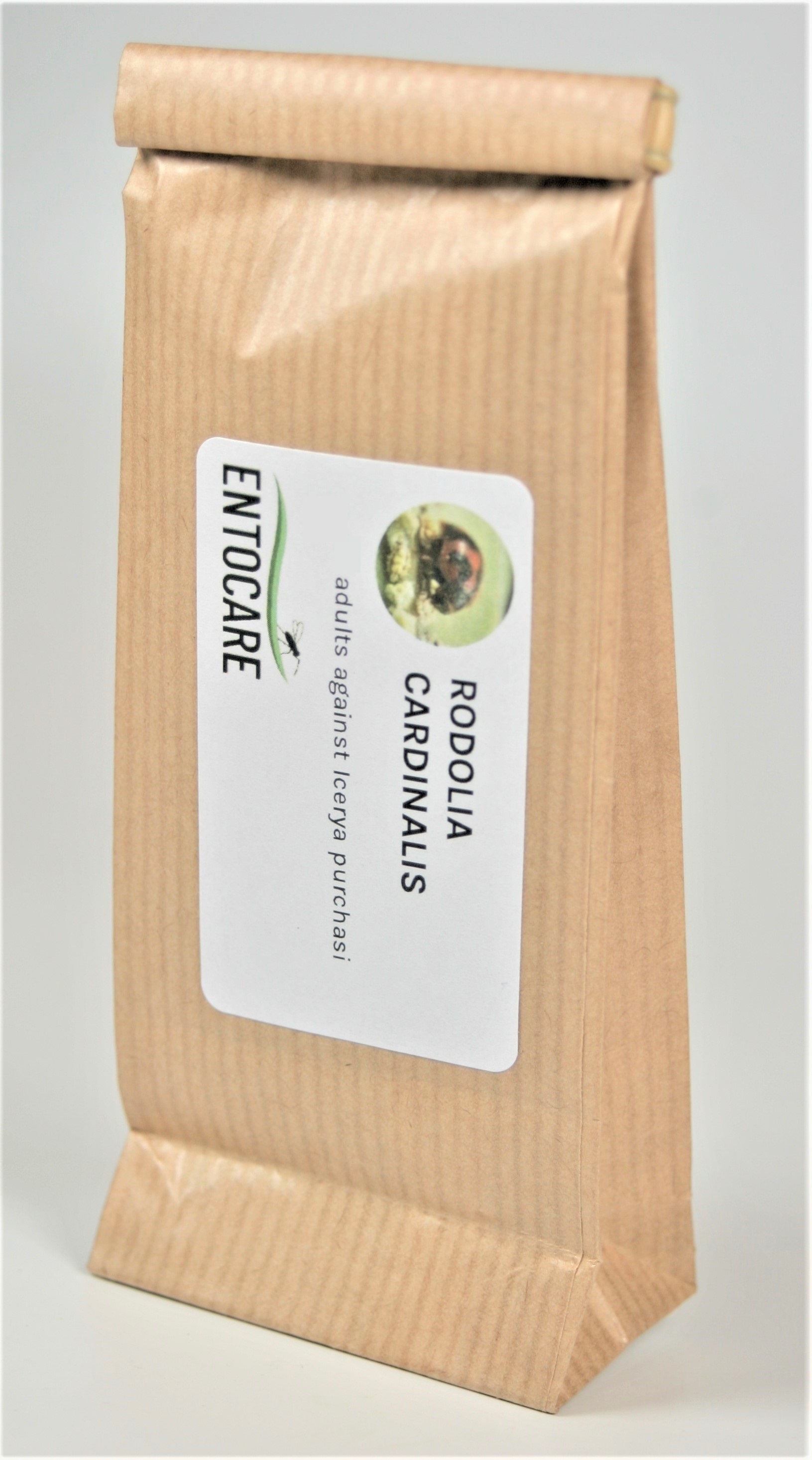 Ein effektiver Wirtsfraß betreibender Marienkäfer, der gegen Icerya purchasi eingesetzt wird. Outdoor von Mai bis September und Indoor von März bis Oktober ab 18°C einsetzbar. Optimal bei 25°C, 50-80% rLf.